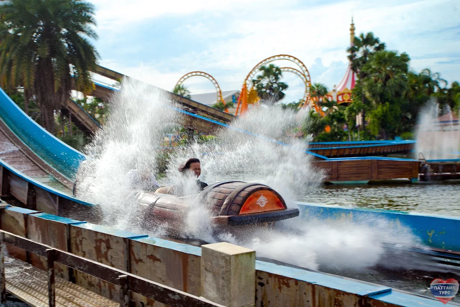- Log Flume - подобие бобслея: «боб» в виде большой бочки с пассажирами преодолевает путь, состоящий из подъёмов и водных спусков.